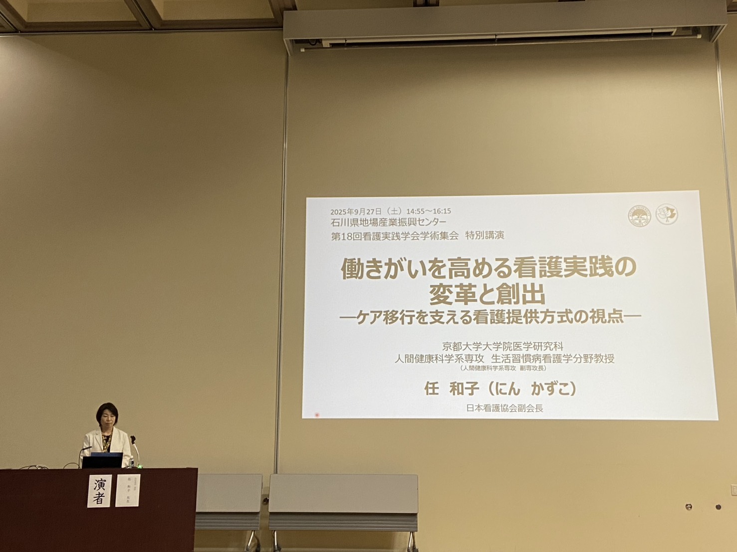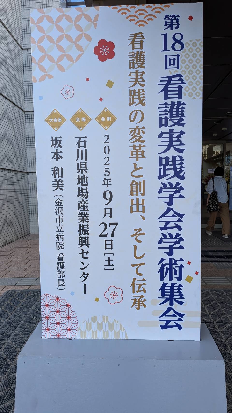 2025年9月27日(土)、第18回看護実践学会学術集会を石川県地場産業振興センターにて開催いたしました。477名という予想を上回る参加登録をいただき、盛況のうちに会を終えることができました。メインテーマは「看護実践の変革と創出、そして伝承」。そして、特別講演、シンポジウム、看護交流集会、ランチョンセミナー、一般演題発表(口演17題・示説13題)を通じて、看護の未来と伝えるべき実践について、参加者とともに考え、語り合う貴重な機会となりました。また、「能登応援復興企画」にも多くの方に足を運んでいただくことができました。ご参加いただいた皆様、そして企画・運営にご尽力いただいた皆様に、心より感謝申し上げます
